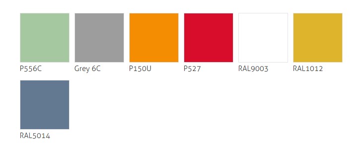 Kolory kubełków siedziskowych: żółty, pomarańczowy, niebieski, biały i czarny (można dowolnie mieszać)