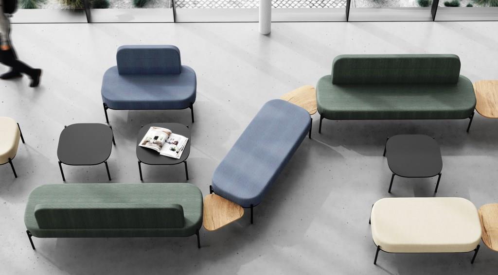 Linia LEAF_POD - nowoczesne i wygodne pufy, siedziska i stoliki do poczekalni i strefy relaksu.