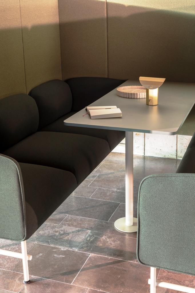 NEBULA nie tylko stawia na wygodę siedzenia, ale także dba o poprawę akustyki wnętrz dzięki systemowi parawanów montowanych na sofach i fotelach. Solidna konstrukcja, wysokiej jakości materiały oraz ekologiczne podejście – eliminacja zszywek w montażu pokrowców i ułatwiony recykling – czynią Nebulę trwałym i przyjaznym dla środowiska wyborem.
