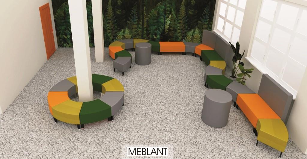 siedziska Snake - układ na holu w szkole 450 x 350 cm